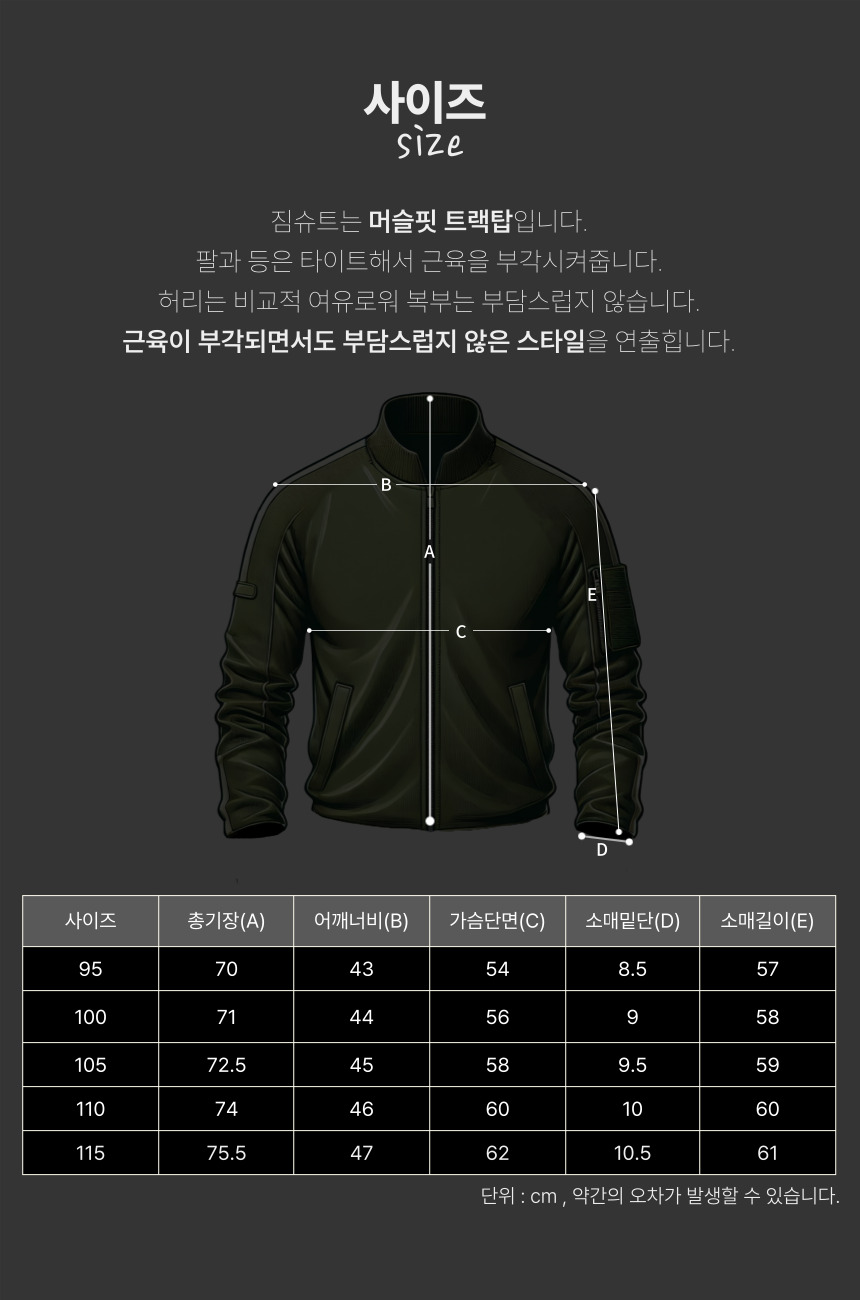 - 근육 라인을 강조하는 머슬핏 트랙탑