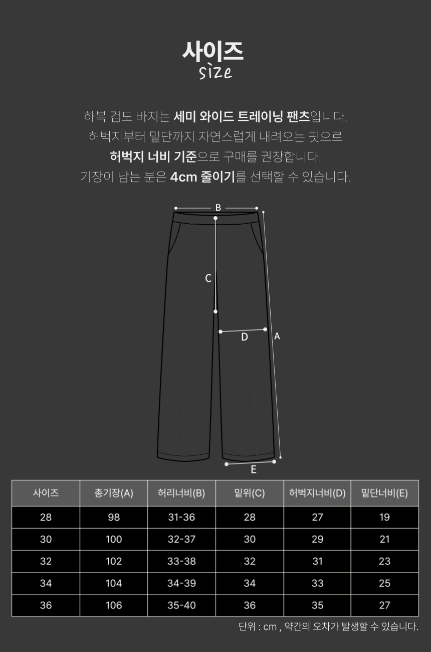 원턱 하복 바지 세마디