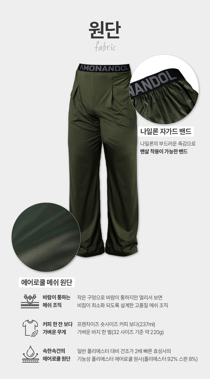 - 여름 운동에 적합한 에어로쿨 메쉬 스판 원단